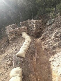 A las 6 de la mañana desde dentro de la cueva se da la salida de esta carrera, a los 300 metros ya estás subiendo por esa fila de leds al Pipa, unos 500 metros de desnivel en 3km. después una bajada igual de dura que la subida, incluso cuerdas para ayudarte a bajar, después nos enfrentamos al muro, otra subida de otros 500 metros de desnivel en 3 km y otra bajada igual de técnica que la anterior, ya para llegar a Alfondeguilla, donde llevas 10 km y 1000 positivos de un terreno muy técnico, un recorrido rompepiernas que no te deja un momento para poder recuperar, la carrera se va adentrando por la Sierra del Espadán y a lo lejos se ve las antenas del Pontal de Eslida y lo reconoces ya que en Dements pasamos por allí, y de ahí la cresta del pontal, que ya la conocía dels dements pero en sentido contrario, de final de la cresta hasta Ain una bajada como nos tiene acostumbrados la Sierra del Espadán, de Ain a Eslida conocemos el recorrido de dements, en Eslida ya en el km 38 vas viendo el Bar Paquita, la casa donde dormimos en Eslida, sitios conocidos y que te recuerdan como hace 3 meses estábamos allí disfrutando de Dements, de Eslida a Artana el recorrido se suaviza un poco y sólo te queda subir el puntal de artana, llegando arriba del puntal vas viendo trincheras de la guerra civil de la línea XYZ, una línea de trincheras que hizo el ejército republicano para defender Valencia del avance de las tropas nacionales, a la vez que hacemos deporte, turismo e historia.