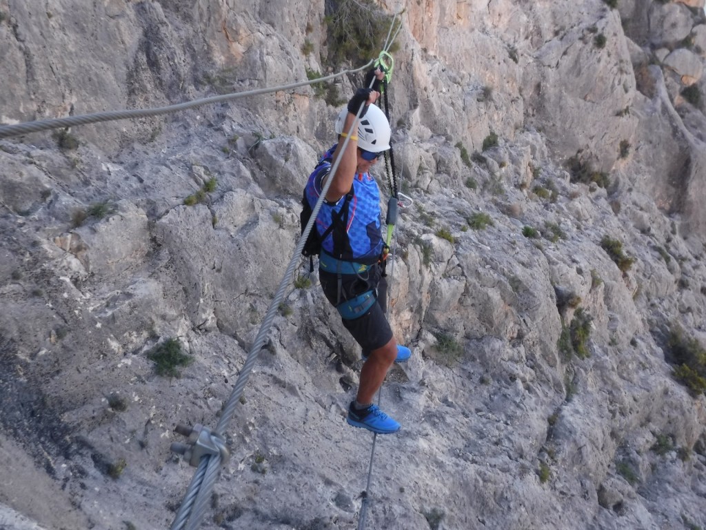 Una vez iniciada encontramos tramos verticales, pequeños desplomes, recorridos horizontales, un puente nepalí y otro tibetano, en definitiva la combinación perfecta que hizo que pasara una mañana distinta y muy divertida.