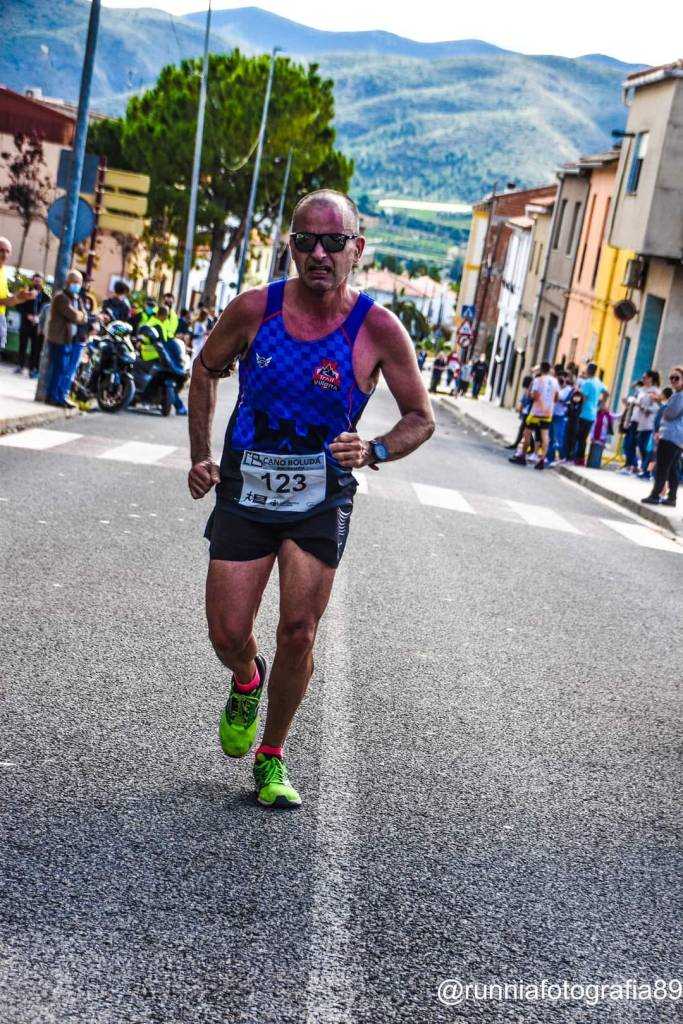 Con más de 500 carreras a sus espaldas, nuestro compañero Vicente Sánchez se plantó en la localidad de Montesa, en el corazón de la comarca de La Costera. Carrera corta, pero explosiva, que tiene su culminación en las ruinas de castillo que domina toda la localidad, y que fue la sede de la Orden de Montesa. Muchísimos años de historia para dar cobijo a una prueba de 9 km, pero que no tiene nada de suave. Vicente, tal y como es habitual en él, puso un ritmo muy constante y fuerte, consiguiendo llegar a la meta en posición 45 de la general y 8º en su categoría, la de veterano B.