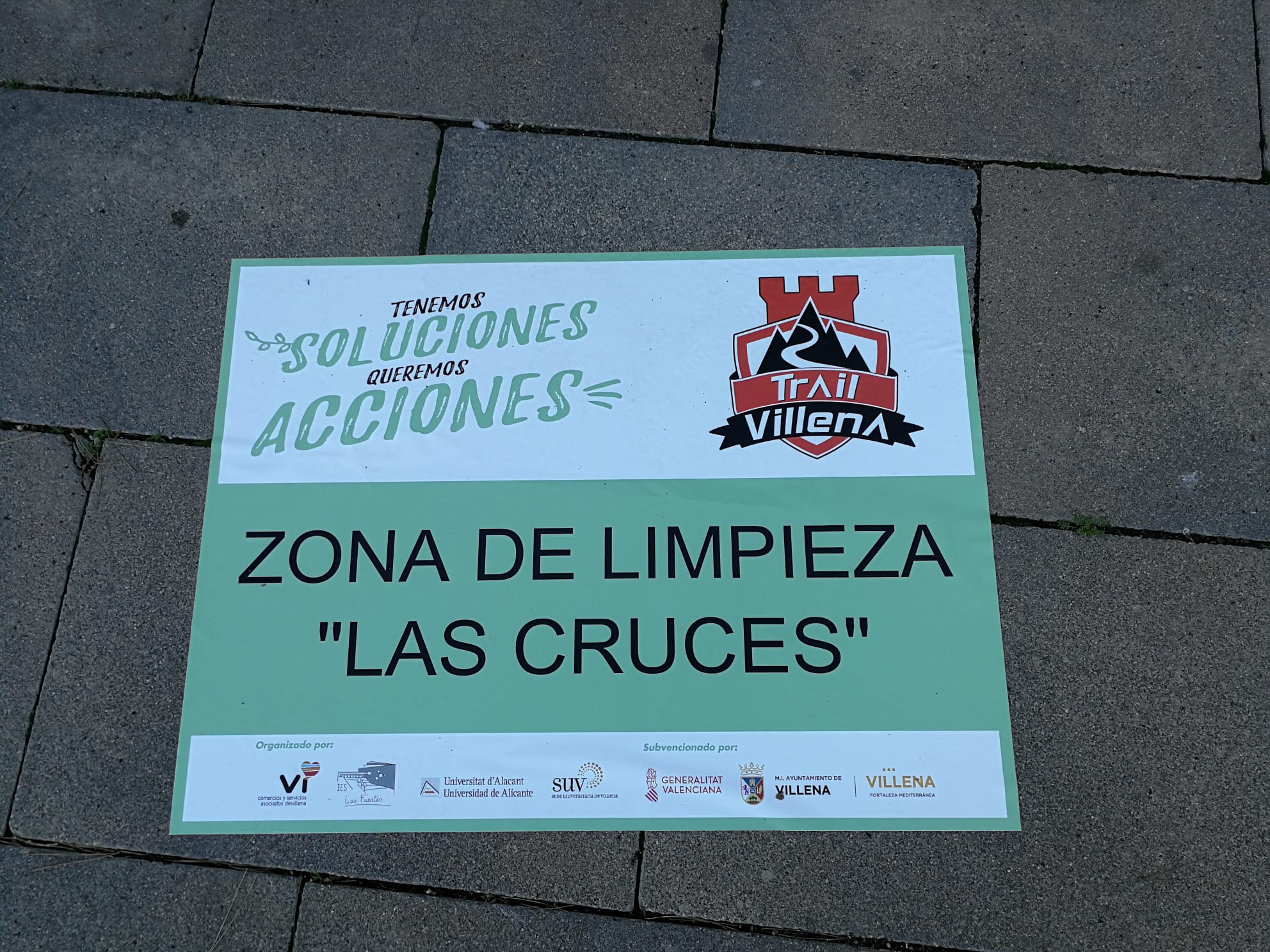 Como nos contó nuestro presidente Miguel Flor; el punto de encuentro fue a las 9:00h en la explanada del Teatro Chapí y desde allí se distribuían los distintos grupos de limpieza. Al Trail Villena, le correspondió dirigir a unos 60 voluntarios por las zonas de las Cruces, Merenderos y Skate Park.