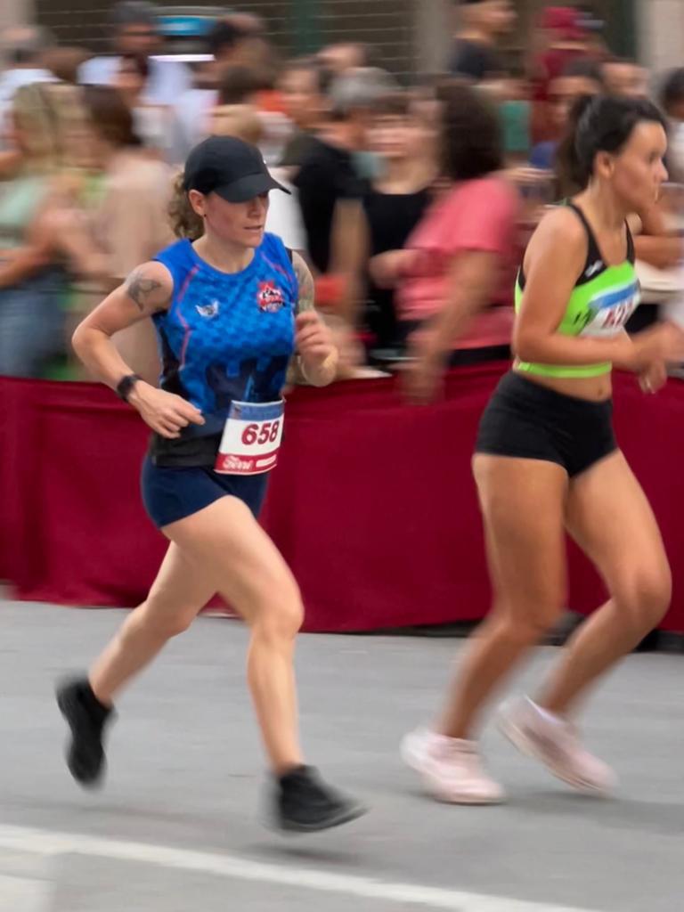 La corredora Laura Domene, en un mano a mano con Pilar Rubio, consiguió llevarse la prueba de atletas élite femenina.