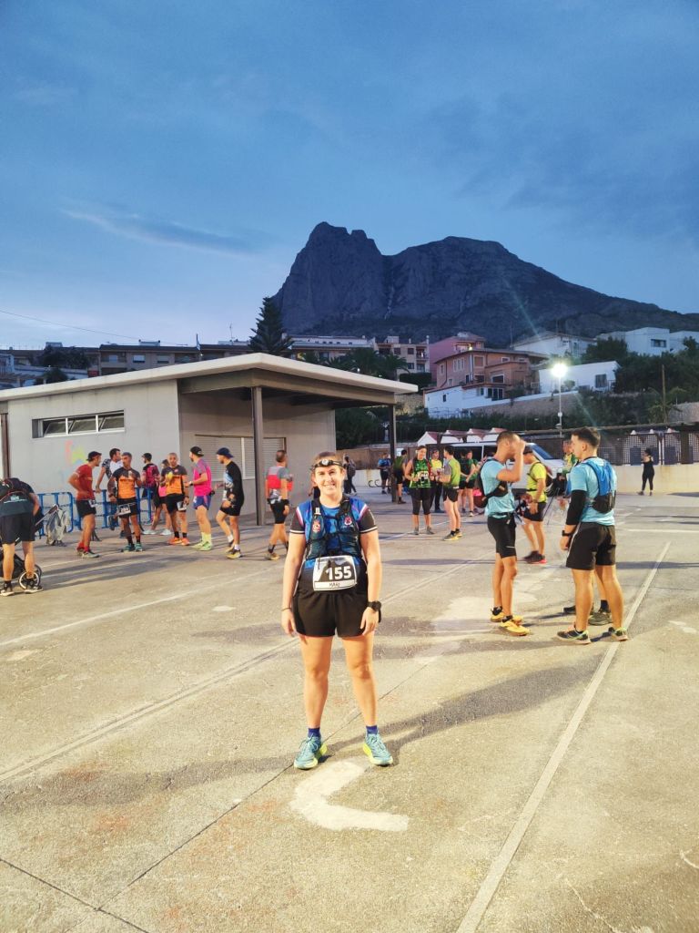 El trazado, de 16 kilómetros con 900 metros positivos, consistió en dar una vuelta al emblemático Puig Campana ataviados de frontal de luz por terreno no excesivamente técnico y hasta allí se desplazaron cuatro de nuestras compañeras y compañeros.