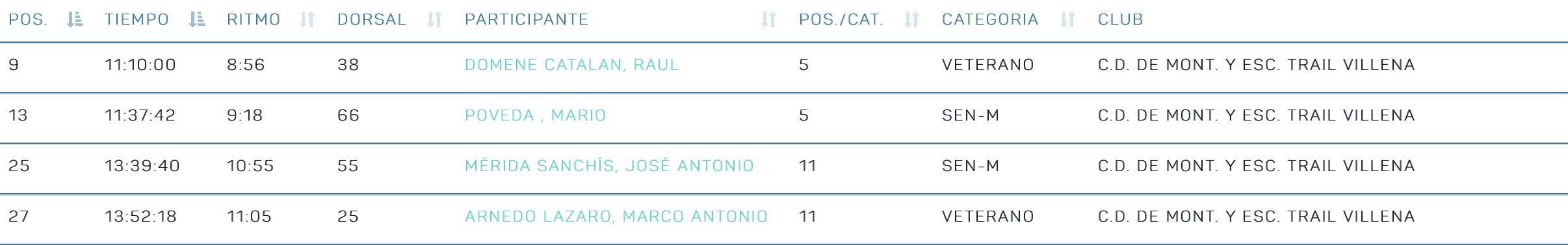 Víctor Moya de la Iglesia terminó la prueba en un tiempo de 1 hora 1 minuto 24 segundos, lo que le valió para obtener la posición 91 en la clasificación general y ser el 17 en la categoría de veterano, mientras que Miguel Flor terminó la prueba en 1 hora 26 minutos y 47 segundos, consiguiendo la posición 288 de la clasificación general y 15 en la categoría de veterano.