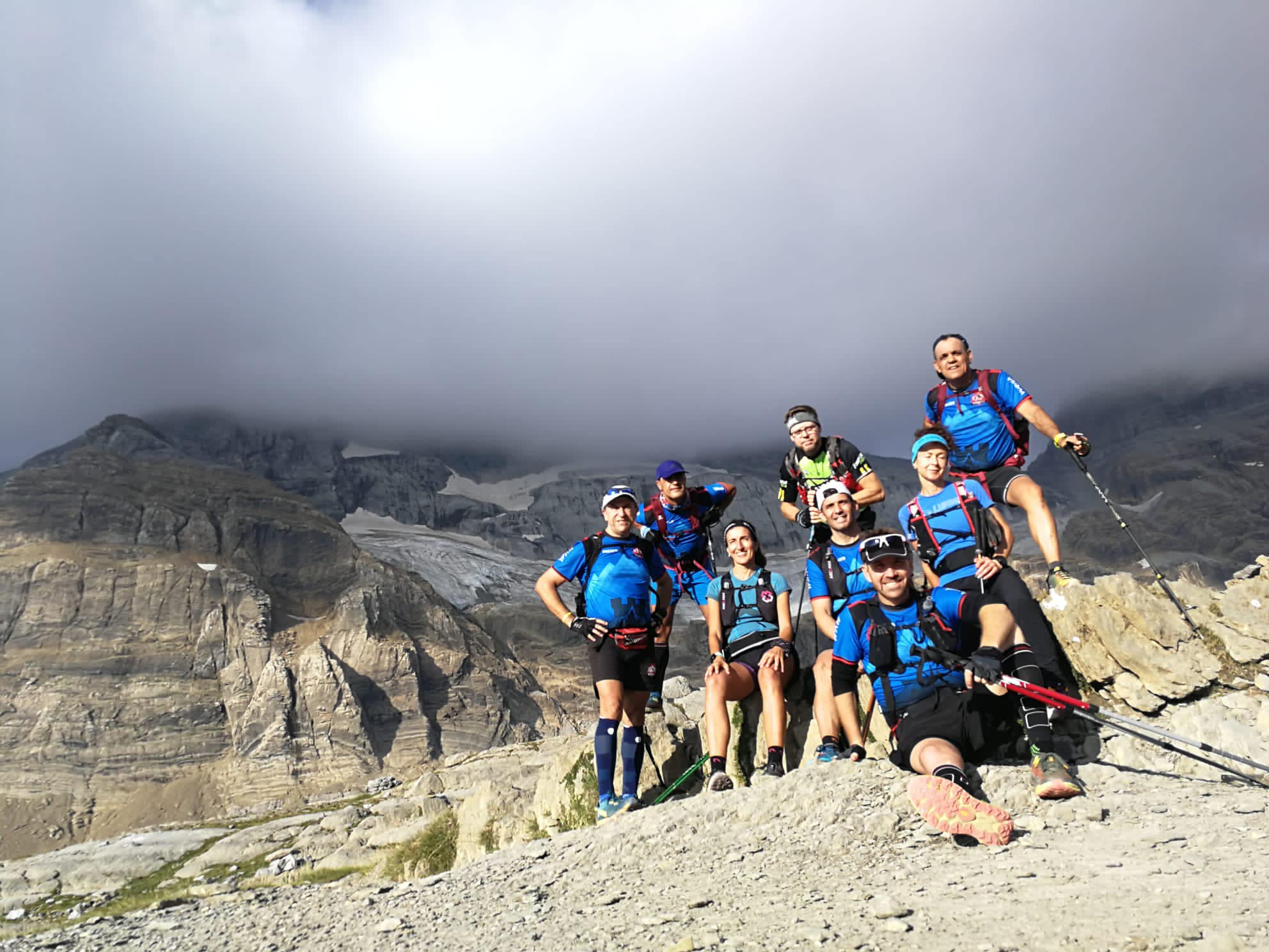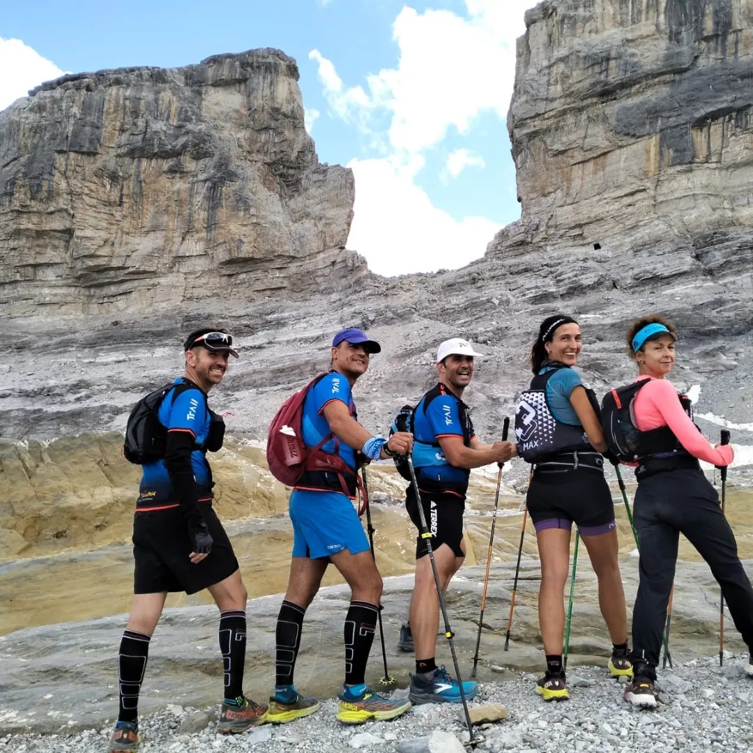 Lo que comenzó con un proyecto hace unos meses finalmente acabo en un mix de trail runners de cuatro clubes diferentes, unidos por un mismo objetivo, conocer el recorrido de Monte Perdido Extrem, ocho componentes, de ellos una chica del Centro Excursionista Eldense Trail Club (Magda Navarro), otra chica de la sección de trail del Club Atletismo Promesas Villena (Araceli Arabesa), un chico del club Fondistas Yecla (Sebas) y cinco chicos del Trail Villena, los hermanos David y Francisco Pardo, Javi Gandía, Juanjo Ortuño y Miguel Flor.