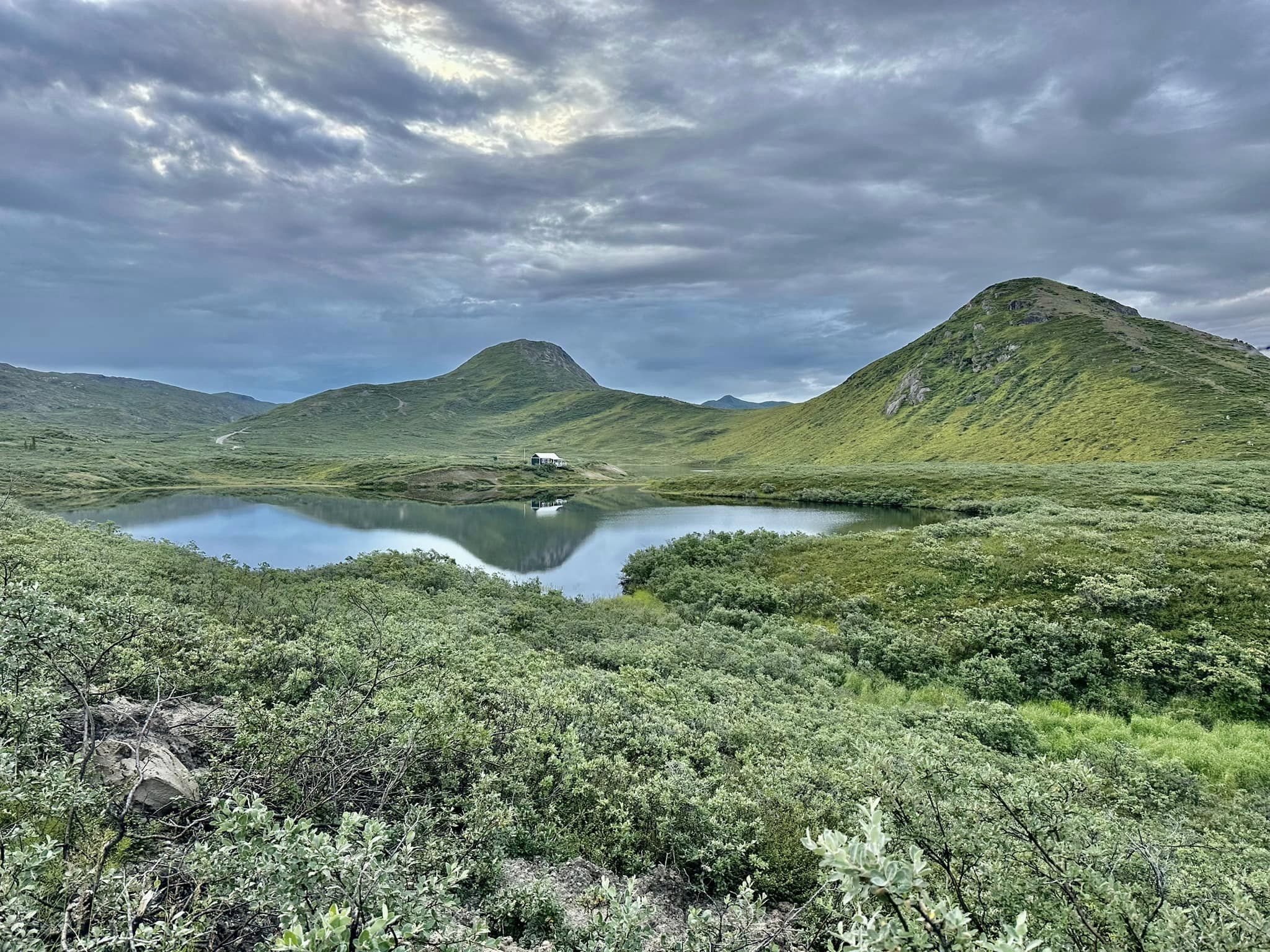 Me arrimo a un lago y recargo agua, no tengo salida, no es del mejor color pero tengo que beber sino es otro problema añadido (no, no llevo pastillas potabilizadoras ya que en Islandia no necesite, el agua era súper trasparente) y había riesgo de deshidratación.