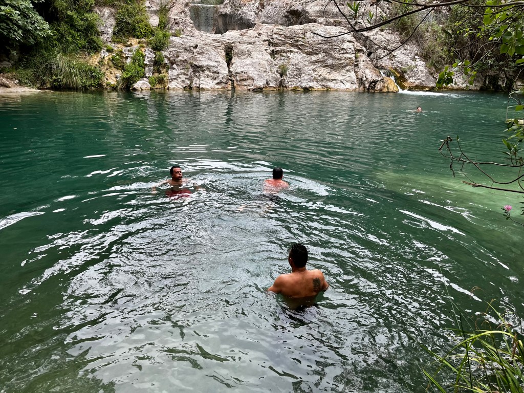 El peso de mi mochila estaría en 8 o 9 kg imagino. Los pies mojados desde el principio cosa que me hizo preocuparme pero el paisaje es brutal, montañas a los lados, muchas de ellas con verde, no paro de sacar fotos y filmar.