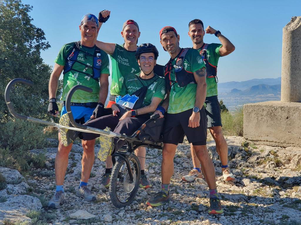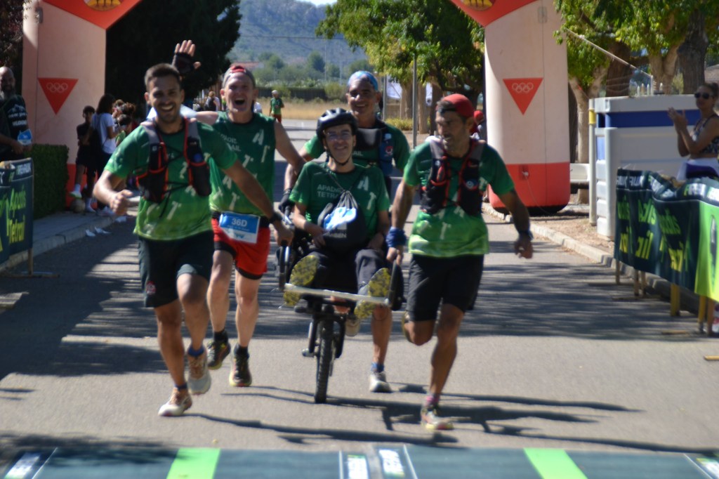 También tenemos que hacer una mención especial a nuestros compañeros Pedro Fernández, Juan José Malpica, Raúl Domene y Mario Poveda que realizaron la prueba de trail llevando a Kike en una silla adaptada permitiendo que pudiera conocer la belleza de Peña Rubia. Un esfuerzo titánico y solidario que siempre deja una gran recompensa y satisfacción personal, ni más ni menos, siempre iguales.