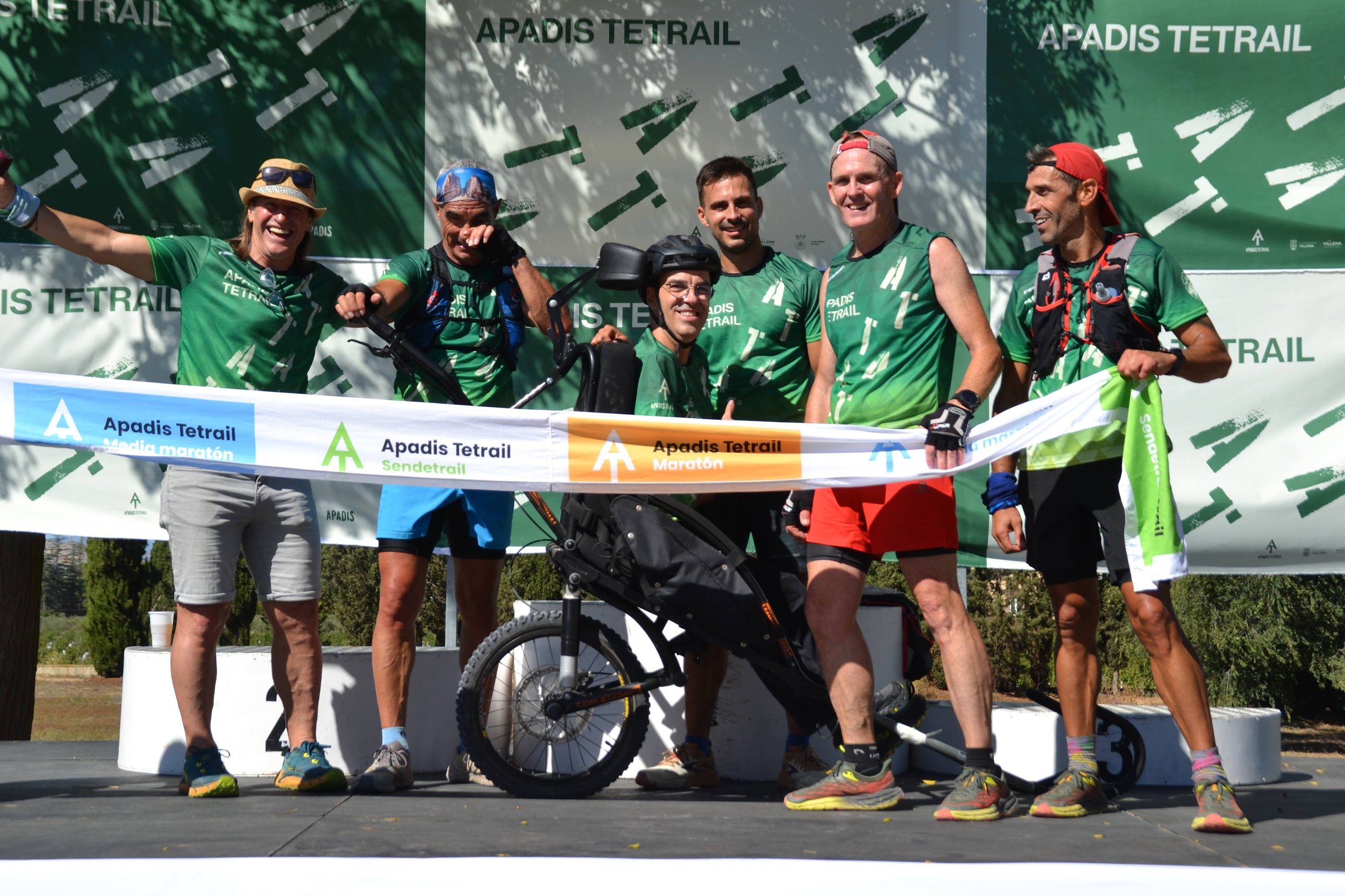 También tenemos que hacer una mención especial a nuestros compañeros Pedro Fernández, Juan José Malpica, Raúl Domene y Mario Poveda que realizaron la prueba de trail llevando a Kike en una silla adaptada permitiendo que pudiera conocer la belleza de Peña Rubia. Un esfuerzo titánico y solidario que siempre deja una gran recompensa y satisfacción personal, ni más ni menos, siempre iguales.