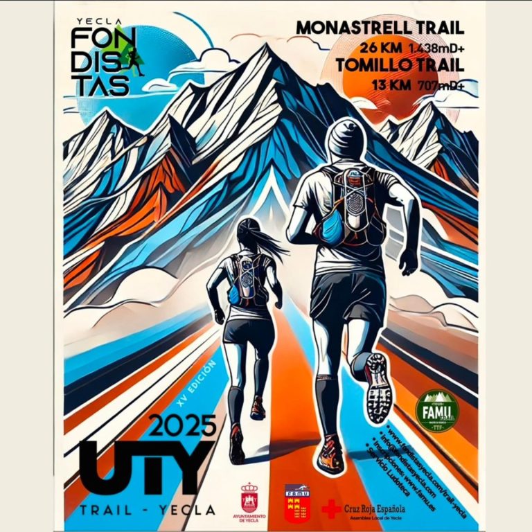 El pasado sábado día 15 de febrero de 2025 tuvo lugar en la localidad de Yecla (Murcia), una nueva edición de la UTY Yecla, con dos pruebas: la «Monastrell trail» con un recorrido de 26 kilómetros y 1.438 metros de desnivel positivo, y la «Tomillo trail», con un recorrido de 13 kilómetros y 707 metros de desnivel positivo, desarrollándose ambas carreras por el incomparable marco de la Sierra de Salinas.